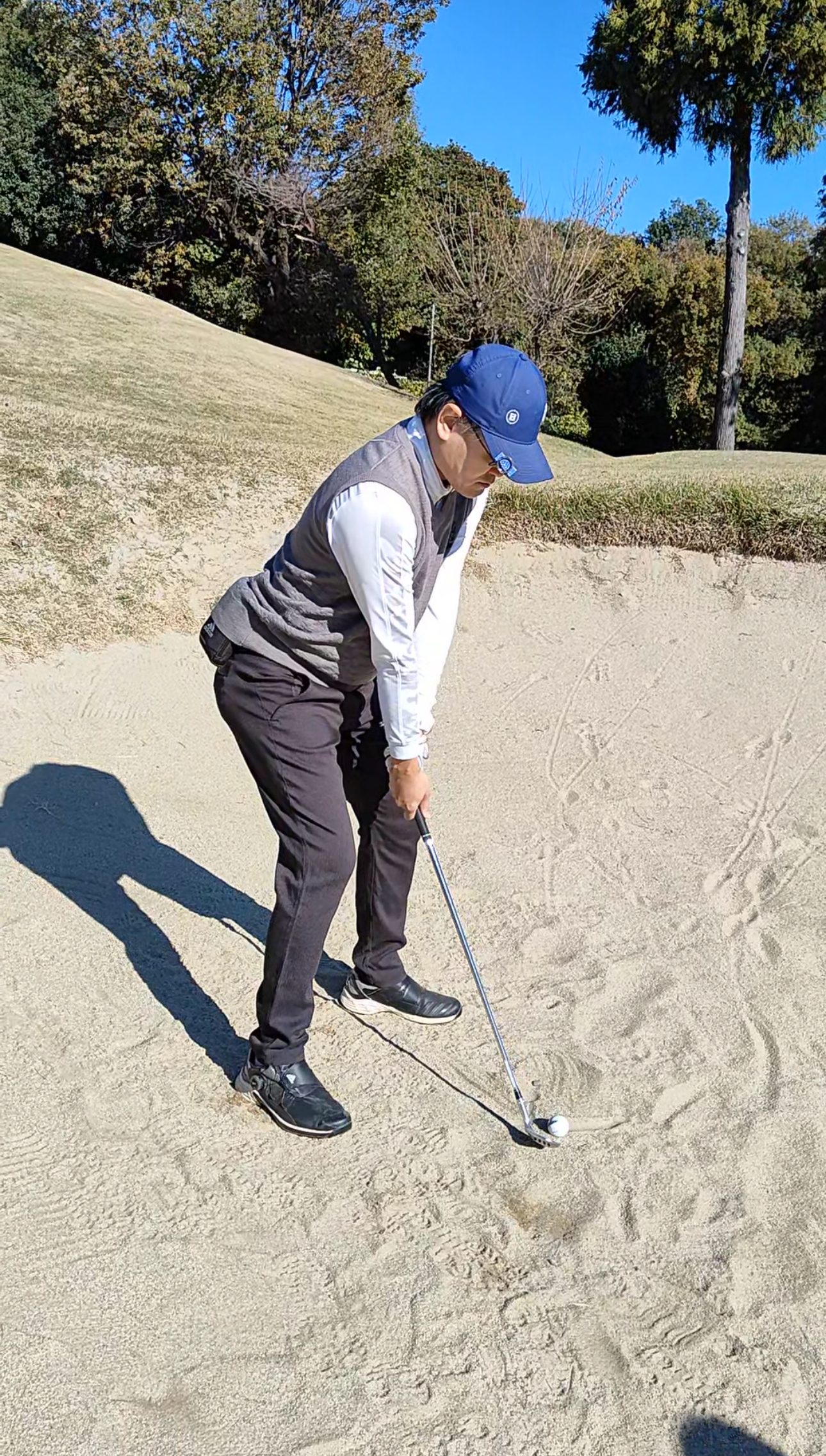 まずは硬い砂の少ないバンカーです。